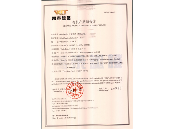 重慶第一單擁有有機(jī)認(rèn)證資質(zhì)原裝原瓶進(jìn)口有機(jī)葡萄酒的進(jìn)口商!