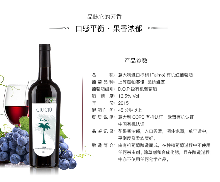 棕櫚有機(jī)紅葡萄酒