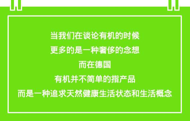如今,有機(jī)生活還成為德國(guó)的一項(xiàng)國(guó)策,有機(jī)工業(yè)和消費(fèi)有機(jī)產(chǎn)品的民眾,都可得到減稅的優(yōu)惠。
